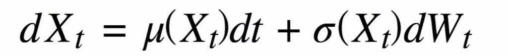A stochastic differential equation is an equation that differentiates the behavior of an object that moves randomly by ⊿t and explores the probability of going to a place after T time. That is, the place you will go to in the future and the probability of going to that place (probability density function; PDF: Probability Density Function). It is a coined word that combines probability and differentiation. Probability cannot be differentiated. During a high school biology lecture, I think I have actually dropped pollen on the surface of the water and observed the movement after I discovered that when I dropped pollen on the surface of the water, it made a random movement (Brownian motion). Einstein also tried to express the spread of cream in coffee with an equation. In both cases, water molecules collide with pollen and cream, causing irregular (random) behavior.